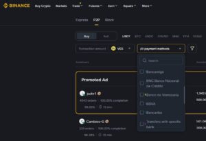 Los usuarios pueden elegir el Banco de Venezuela, Banco del Tesoro o el Banco Digital de los Trabajadores en el P2P de Binance.